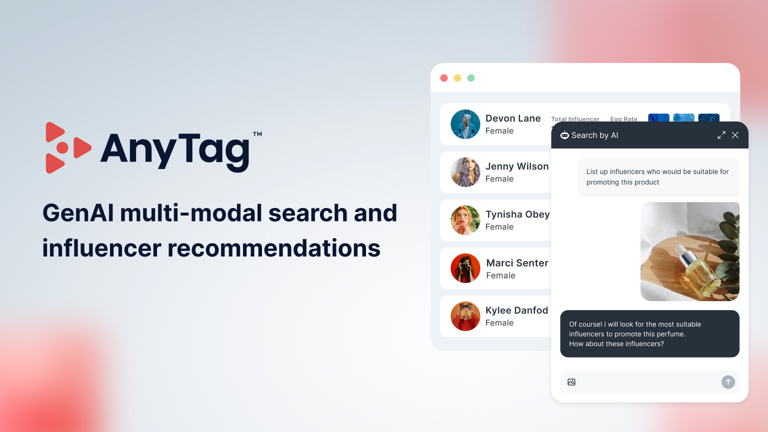 Fitur GenAI baru di AnyTag mencakup rekomendasi influencer berbasis obrolan melalui asisten AI, dan pencarian influencer berbasis gambar.